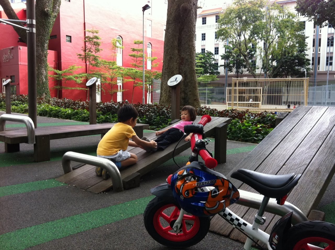[Image]It's a nice Saturday morning with some relax time with the kids as they ride bikes and play together at Duxton Plain Park near our home. Ethan and Talia really love each others company...and Daddy's too of course.