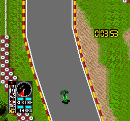 [Image] ~ F1 CIRCUS '91 ~NichibutsuHuCard1991Give it a few seconds and F1 '91 will seem quite poised to separate itself (superficially, at least) from its primitive predecessor. Slight improvement in the (still-objectionable) graphics and a menu of selectable tunes make for some measure of relief from the aesthetic torture one was subjected to in the original Circus. Unfortunately, proceed through the levels and you'll repeatedly find yourself following all-too-similar-looking paths, one "slim gray road paved through greenery" after another. [Image]