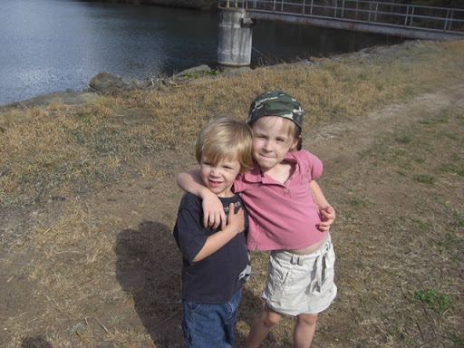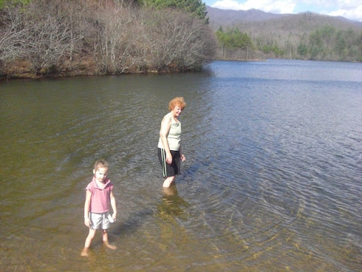 [Image] One of our favorite things to do when we visit Grandma and Grandpa is hike up the mountain to the reservoir. And boy is it a hike! I even tried running up most of it. Talk about feel the burn! [Image] Here is Annie and Grandma walking around in the water. Grandma said it was so cold she couldn't feel her legs. I opted to just stay out! [Image] I thought this picture was precious. I love my girl so much. She really is the sweetest baby I know. [Image] These are two of the coolest kids I know. They skipped nap to walk up to the reservoir and didn't complain at all. The only problem we had was that I told Annie a story about a Cougar and she was quite scared the rest of the way down. She just kept asking if there were any "Hoogers" around. I will always treasure moments with my kids.