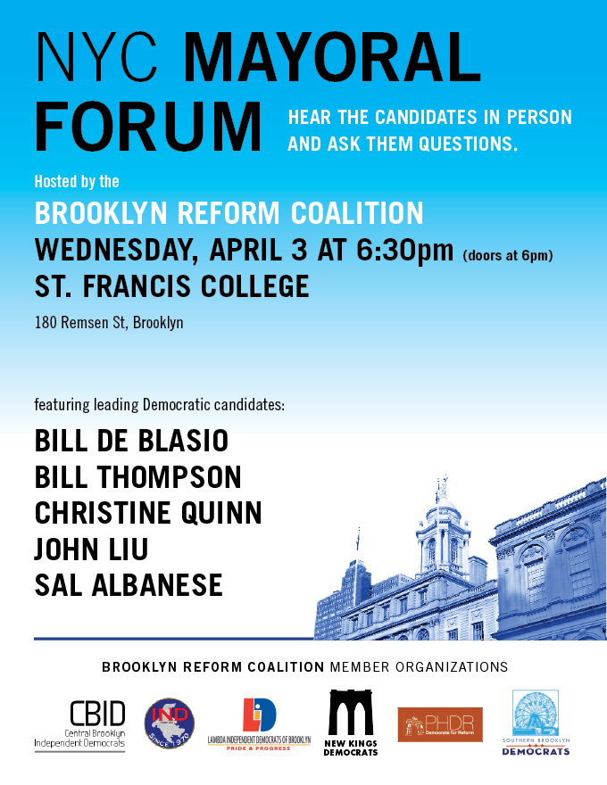 Sponsored by a coalition of Brooklyn-based reform Democratic clubs.